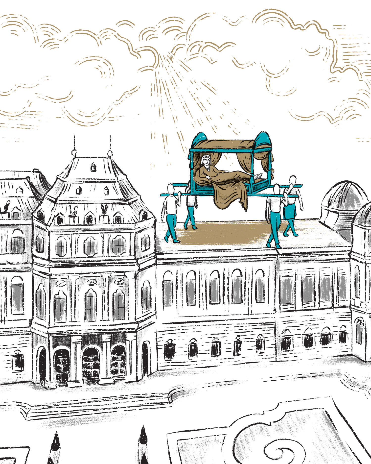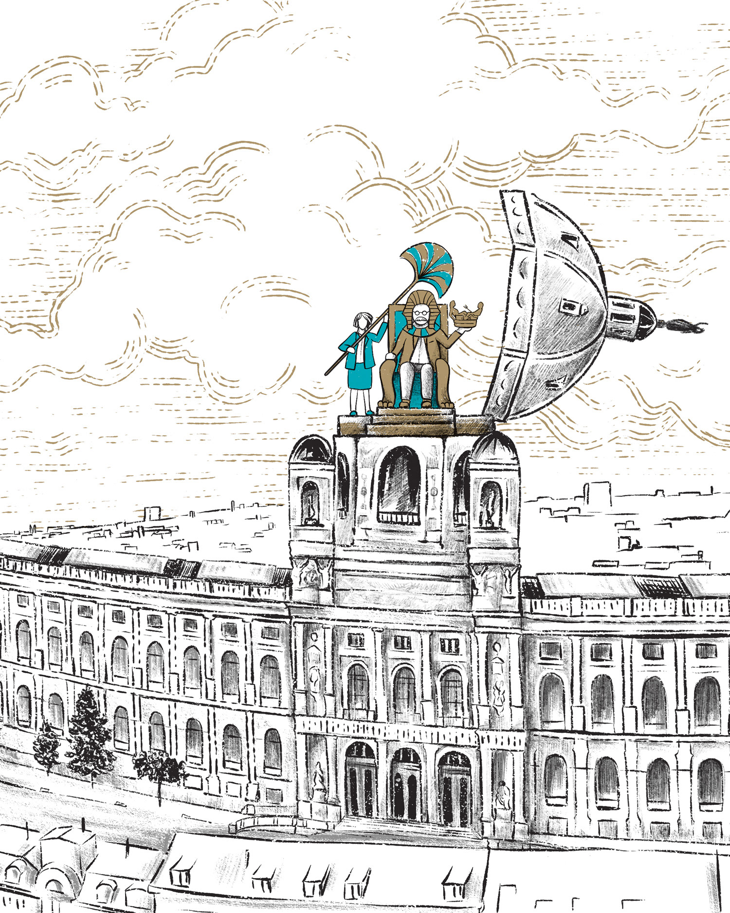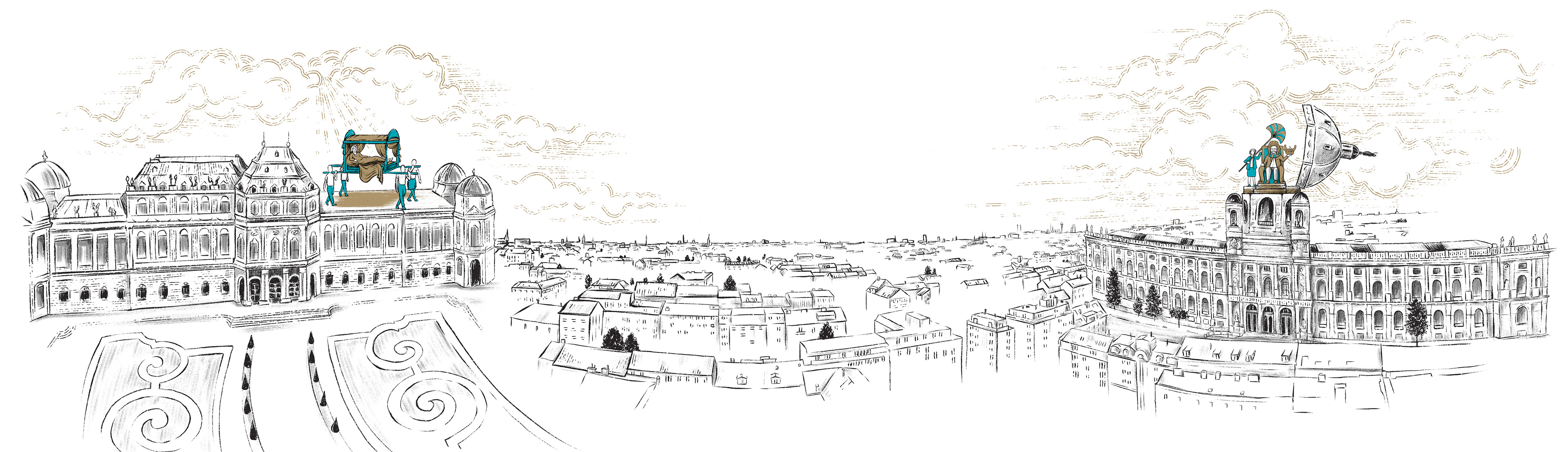Artwork for 'Missbrauch mit Kultur' in DOSSIER magazine. The article is about several scandals and abuse of power in Viennese cultural institutions. I depicted the three key players in their respective work places Belvedere, Burgtheater and Kunsthistorisches Museum Wien embedded in a skyline of Vienna on a four page spread.