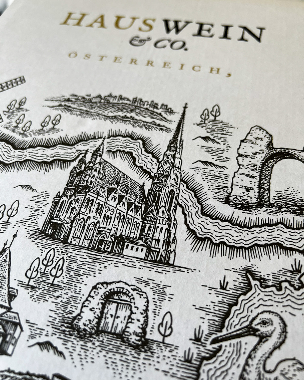 I got to work together with Alessandri Design for Wein & Co and was tasked to created an illustration featuring iconig landmarks of Austrian regions for their house brand of wine.